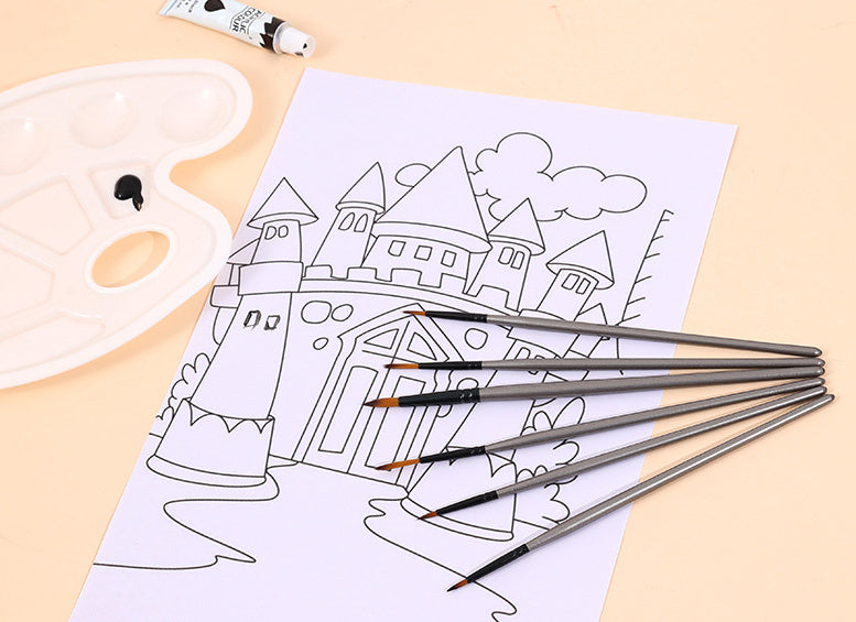 6 Pieces Suit Nylon Hair Brush Hook Line Silver Wooden Pole Student Diy Sketch Painting Mark
